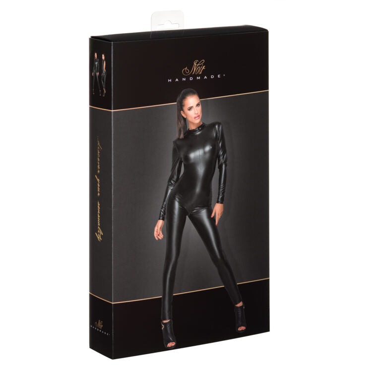 Noir Wetlook Overall mit tiefem Rückenausschnitt