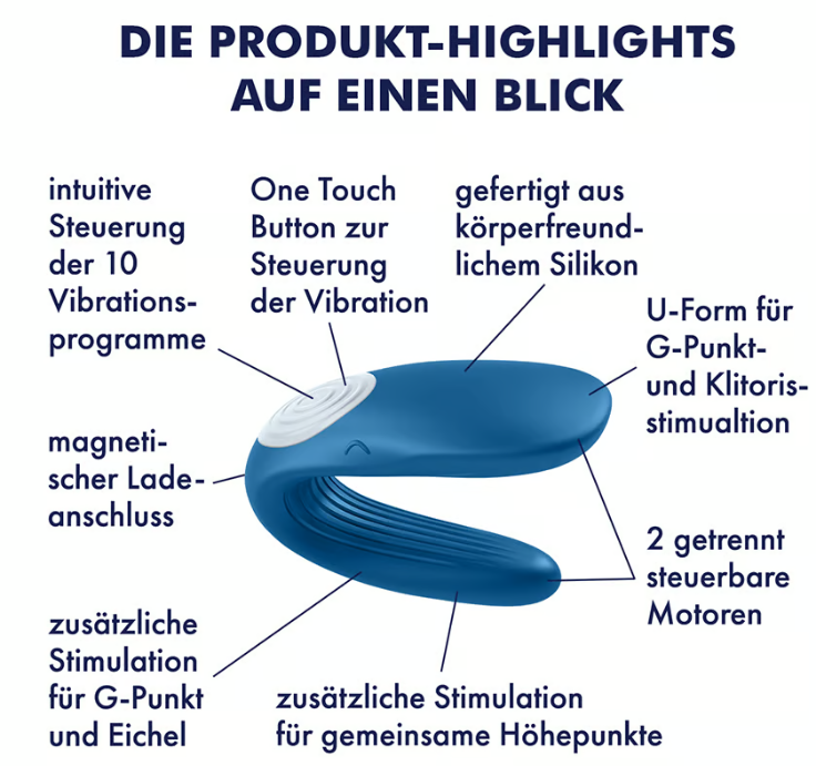 Sucht ihr gemeinsam nach einem prickelnden Abenteuer zu dritt? Der Satisfyer Double Whale könnte genau das Richtige für Euch sein. Wie der Name andeutet, ist dieser Multivibrator für Paare wasserdicht (IPX7) und ideal für sinnliche Stunden im Hotelpool oder in eurer eigenen Badewanne. Er wurde für Paare konzipiert, kann jedoch auch allein von ihr genutzt werden. Während der Intimität stimuliert ein Schaft ihre Klitoris, während der andere vaginal positioniert wird. Die zwei Motoren sorgen dafür, dass sowohl ihre Klitoris als auch ihr G-Punkt gleichzeitig verwöhnt werden. Zudem genießt er die Massage durch den inneren Schaft. Ihr habt die Möglichkeit, zwischen 7 Vibrationsrhythmen und 3 Intensitäten zu wechseln, die Euch beide in ekstatische Höhen befördern. Der Akku ist bequem mit dem mitgelieferten USB-Kabel aufladbar.