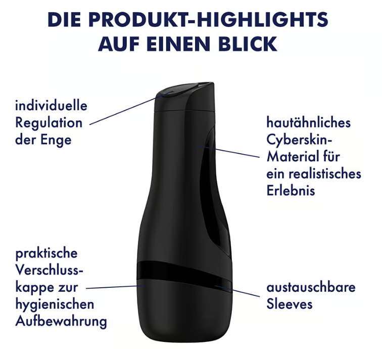 Der innovative Innendruck-Regulator des Satisfyer Men Classic ermöglicht Dir, die Intensität nach Wunsch zu steuern. Möchtest Du Abwechslung? Verschiedene Sleeves mit unterschiedlichen Strukturen sind erhältlich und leicht austauschbar. So passt sich der Masturbator immer Deiner aktuellen Laune an! Für ein noch geschmeidigeres Erlebnis empfehlen wir die Kombination mit einem Gleitmittel, beispielsweise von Satisfyer.